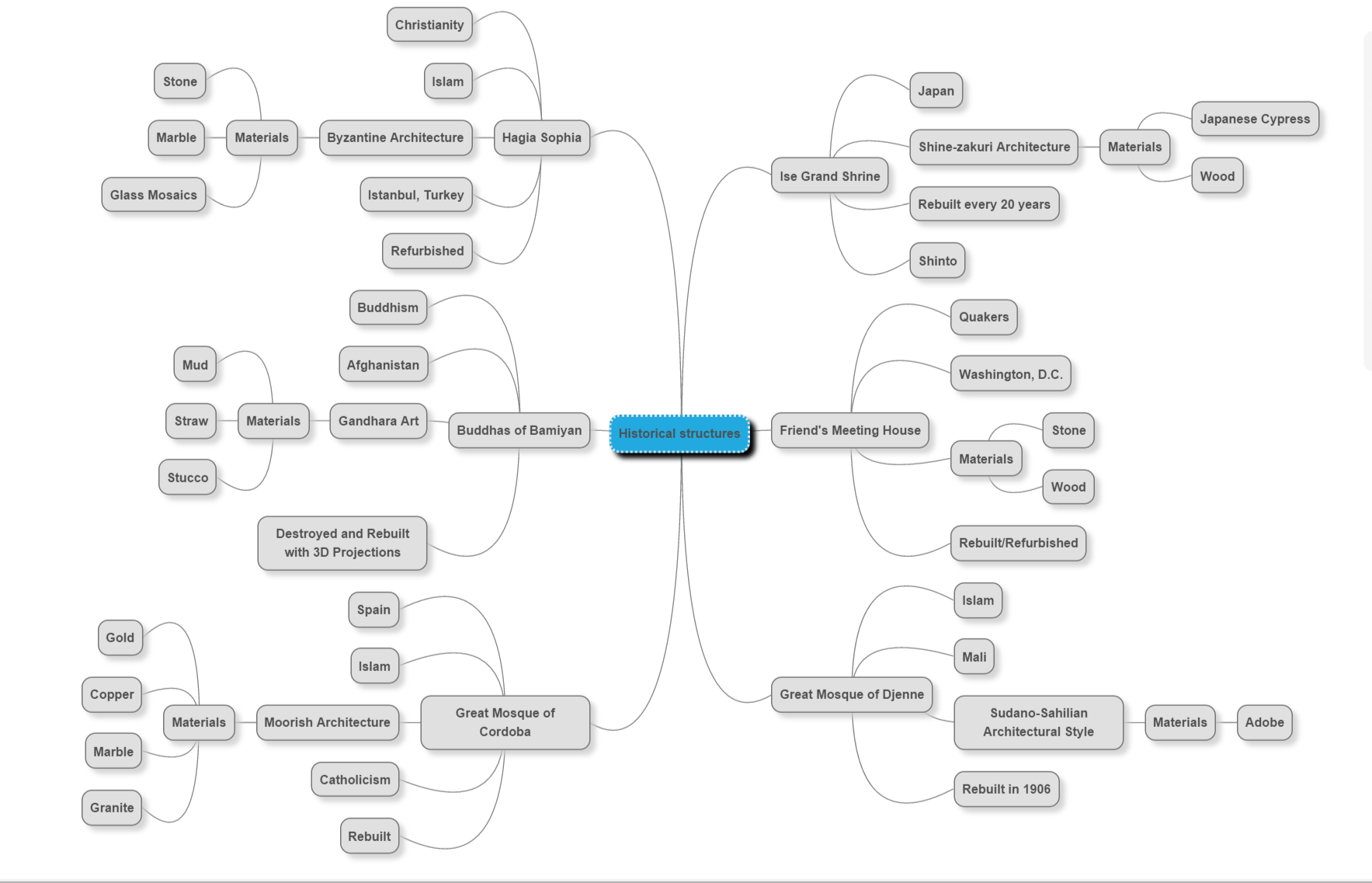 In my concept map I felt to modernize the historical locations read about there needed to be four main points met. Preservation, Religious Beliefs, Tourism, and Income. They all support each other in some way or another. For example preservation can not happen without income, Tourism can not happen with out the religious beliefs, income needs tourism, and the survival of what religious beliefs are about can not happen with out the preservation of the building it is held in.
